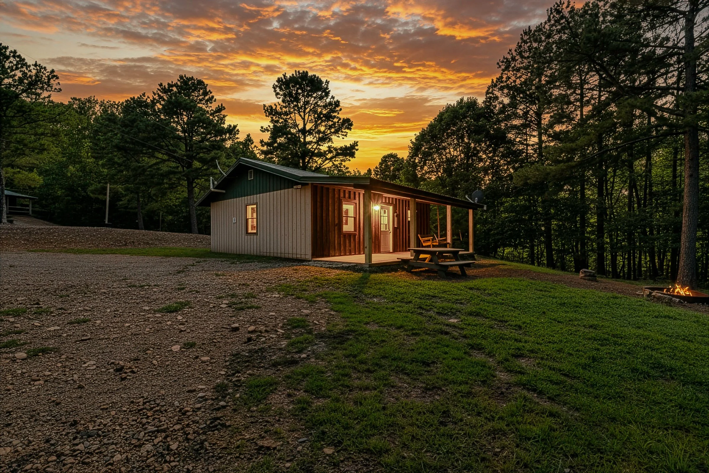 Tucked into the heart of Heath Valley Cabins, Moose Lodge offers the perfect cozy retreat for couples or a small family. With one queen bed and a comfortable couch, it accommodates up to 3 guests (2 adults + 1 child). Inside, you’ll find a full kitchen, central heat & air, and all the essentials—stove, refrigerator, microwave, linens, dishes, satellite TV, and more. Step outside onto your private porch to soak in forest views, or gather by the fire pit as night falls. With immediate access to the Ouachita National Forest and the Wolf Pen Gap ATV trails (no trailering needed), your cabin is both peaceful and adventure-ready.
